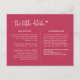 Estos elegantes detalles de la boda insertan una tarjeta de gabinete que presenta una elegante caligrafía de "los pequeños detalles" con el corazón y el sencillo tipo de letra de la tipografía sans serif en el fondo viva magenta para un limpio aspecto minimalista y moderno junto con un código QR, que es una hermosa manera de dar detalles como alojamiento y otra información importante de boda que necesitas dar a tus invitados sobre tu boda. La sencillez de este diseño le da un toque de elegancia a su boda. Funciona bien con muchos temas bodas y sin duda una gran adición a su papelería boda. Basta con personalizar la información, el código QR y la URL del sitio web boda en unos pocos pasos fáciles y personalizarla para darle un toque personal agradable. Nota: La elegante caligrafía de "los pequeños detalles" y el corazón junto con las líneas y otros elementos de arte gráfico no pueden editarse, eliminarse ni moverse. Están arreglados.