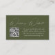 Facilite a los huéspedes la búsqueda de más información sobre su boda y RSVP en línea con estas modernas tarjetas web bodas con un código QR. Las elegantes tarjetas del recinto de la boda muestran "Sitio web Boda" en un guión moderno y blanco sobre un fondo verde oliva. Personalice la tarjeta con la dirección del sitio web de su boda e instrucciones para los huéspedes utilizando las plantillas de texto proporcionadas. La parte posterior de la tarjeta proporciona espacio para texto y/o fotos adicionales. Diseñado para coordinar con nuestra colección de bodas Modern Elegance.