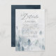 Elegante, detalles de boda de invierno, tarjeta con un bosque de pinos color agua azul y gris. Personalice las tarjetas de información de los bodas añadiendo detalles clave como alojamiento en el hotel, información de recepción de bienvenida, su sitio web, etc. Diseñado para coordinar con nuestra elegante colección de bodas del bosque de invierno.