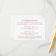 Elegante tarjeta de alojamiento en una combinación de color rosa fuchsia y gris pewter incluye texto personalizado que puede ser personalizado para sus necesidades específicas. Esta versión incluye dos hoteles e información de reservas.