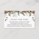 Una tarjeta de inserción para la ducha para bebés solicitada por un libro. Con una vegetación de invierno acuática y flores con poema: "UNA PEQUEÑA PEQUEÑA PETICIÓN, ESPERAMOS QUE NO SEA DEMASIADO DURO, POR FAVOR, TRAIGAN UN LIBRO EN LUGAR DE UNA TARJETA QUE ELLOS CRIARÁN EL LIBRO, BIEN AMADOS O NUEVOS POR FAVOR, ¡RÓTULO EL INTERIOR CON UN MENSAJE!"