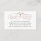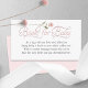 La tarjeta de alojamiento Baby Shower Pink Wildflower es un encantador gabinete diseñado para añadir un toque de elegancia a las invitaciones a la ducha de bebé. Estos rifas de pañales, libros para bebés y tarjetas de ducha de pantalla plana, presentan un bonito diseño de acuarela con un suave fondo rosa que desprende una atmósfera agradable y acogedora. Con una caligrafía elegante, cada tarjeta combina a la perfección la belleza artística con la funcionalidad, invitaciones motivadoras a participar en la rifa de pañales. Diseñadas para los futuros padres que aprecian los detalles más finos, estas tarjetas son una forma deliciosa de garantizar que su ducha de bebé es memorable y está bien llena de productos básicos.