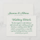 This classic wedding enclosure card showcases elegant emerald script on a soft ivory background, providing a refined space to share important wedding details such as directions, accommodations, or your wedding website with guests.