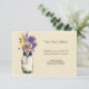 Perfecto para una boda de estilo campestre o tal vez simplemente porque te gustan los frascos Mason. Antiguo frasco Mason colgado de un gancho con luciérnagas volando alrededor. Un fondo vintage desgastado (color beige claro 7501) con el frasco Mason colgado y flores silvestres en colores tonos de púrpura y amarillo. Si tienes alguna pregunta sobre este diseño o deseas un cambio de color, por favor envíame un correo electrónico a paula@labellarue.com SI NECESITAS AGREGAR UNA OPCIÓN DE MENÚ O INFORMACIÓN ADICIONAL, HÁZMELo SABER. También revisa la tarjeta de INVITACIÓN DE BODA y RECEPCIÓN para que coincida.
