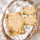 This enchanting baby shower design features a magical vintage storybook scene filled with charming wizard-inspired details. Delicate illustrations of potion bottles, spell books, antique keys, candles, and a wise little owl surround an ornate decorative frame, creating a whimsical atmosphere perfect for a magical celebration. The warm parchment background and soft watercolor textures give the design a nostalgic fairy-tale aesthetic inspired by classic fantasy illustrations. Ideal for wizard-themed baby showers, magical woodland celebrations, or whimsical fantasy gatherings welcoming a little wizard on the way.