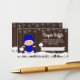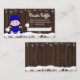 Boys boletos de rifa de pañales con adorable bebé usando un lindo vestido azul oscuro de invierno con gorra en un rústico bosque y fondo de copas de nieve. Agregue el texto al frente y al reverso para personalizar el evento.