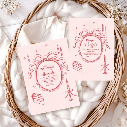 Tarjeta De Recepción Esbozo Mano dibujada Bow Baby Shower Diapper Raffl