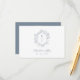 Escudo Floral Azul Dusty Monograma Boda Detalles Tarjeta de Gabinete