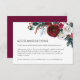 Tarjetas impresas para el recinto de la invitación a la boda impresas por el personalizado para obtener instrucciones, alojamiento para viajes u otra información de los bodas. Utilice las herramientas de diseño para personalizar el diseño, los colores de fondo y el texto con los detalles del boda. Este elegante diseño cuenta con un ramo de flores acuáticas en tonos rojos, verdes y burdeos, perfecto para una boda de invierno o una fiesta de Navidad.