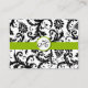 Tarjeta De Recepción Floral de damasco blanco y negro con verde manzana