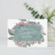 Elegantemente hermosa en tonos de rosa apagado y verde salvia desvanecido, nuestra tarjeta de recepción de boda de Jardín Inglés presenta un fondo de flores de peonía de acuarela en rosa y verde con una superposición de jade verde translúcido que lleva los detalles de la recepción, horario, lugar, dirección y cualquier detalle adicional en letra blanca moderna. Diseñada para coordinar con nuestra colección de boda de Jardín Inglés en Jade.