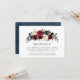 Nuestras elegantes tarjetas de recepción de boda presentan un ramo de flores de borgoña, rosa pálido y azul marino con acentos de follaje verde exuberante. Personalice el diseño agregando los detalles de su recepción de boda. Diseñado para coordinar con nuestra colección de boda Enchanted Floral.