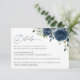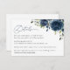Complete su suite de papel boda con esta elegante tarjeta de detalles. El diseño presenta flores color azul marino y vegetación sobre fondo blanco.