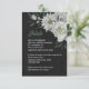 Única tarjeta boda con flores blancas románticas y hojas verdes sobre fondo negro. PARA OBTENER MÁS PRODUCTOS COINCIDENTES, haga clic en la colección superior o póngase en contacto conmigo.