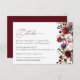 Complete su suite de papel boda con esta elegante tarjeta de detalles. El diseño presenta flores de color burdeos, rosa y violeta y vegetación sobre fondo blanco.