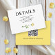 Flores de rosa amarilla de mantequilla QR boda detalles Tarjeta de gabinete. Esta tarjeta no es solamente un accesorio, sino una pieza de arte, adornada con una delicada rosa amarilla de mantequilla. El tallo de los prestamistas del rosa y las hojas verdes están dispuestos en la base de la tarjeta, proporcionando una visión encantadora que complementa el motivo floral de tu boda, marcando un tono sereno y elegante para la ocasión. Además, esta tarjeta sirve para un propósito práctico con la inclusión de un código QR, que los clientes pueden escanear usando sus smartphones. Esta innovadora característica les permite acceder sin esfuerzo a la página web de su boda, donde pueden encontrar todos los detalles necesarios sobre la ceremonia, la recepción y otros eventos relacionados, asegurando que tengan toda la información al alcance de la mano sin necesidad de material impreso adicional. Esta combinación de belleza y utilidad hace de la tarjeta de gabinete un elemento decorativo y funcional de su suite de papel boda.