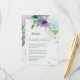 flores románticas azules y violetas hojas verdes bodas botánicos detalles tarjeta del recinto
