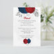 Tarjeta De Recepción flores rojas y azul marino boda botánico plateado