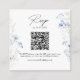 Elegante tarjeta RSVP de código QR de flor azul polvorienta.