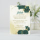 Tarjeta De Recepción Flores verdes de esmeralda hojas de oro