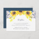 Diseñada para coordinar con nuestra colección de bodas Flowerfields, esta tarjeta de recepción de moda rural cuenta con un spray de girasoles color amarillo acuático y brotes azul marino.