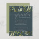 TARJETA DE RECEPCIÓN FOLLAJE VERDOSO GRIS A LA ACUARELA INFORMACIÓN DE