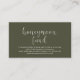 Esta es la Tarjeta de Alojamiento del fondo de luna de miel Boda, en un diseño minimalista moderno y limpio, en un tema de vegetación verde oliva. Puedes cambiar los colores del tipo de letra y añadir los detalles de tu deseo de luna de miel. Teesha Derrick