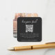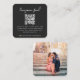 Sencilla y elegante tarjeta para el recinto de fotografía con fondo de luna de miel de boda en un moderno estilo minimalista con una elegante tipografía de escritura natural en blanco clásico sobre fondo de carbón negro, con un estilo de escritura a mano informal. El texto puede ser fácilmente personalizado con su título, URL de pago (zelle, venmo, paypal etc), código QR escaneado, mensaje y foto para un diseño único de un tipo boda. La imagen que se muestra es para fines de ilustracion y sólo se sustituye por la suya. La imagen de marcador de posición es de una pareja feliz posando para una foto de vacaciones. Si necesita ayuda para personalizar este producto, póngase en contacto conmigo con el botón de mensaje y estaré encantado de ayudarle.