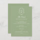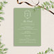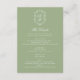 Tarjeta De Recepción Formal Sage Green Floral Monogram Crest Wedding