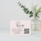 Tarjeta de gabinete RSVP color rosa claro de moda con "Rsvp" en un guión elegante. Cree un código QR escaneado vinculado a su sitio web boda para que sus invitados puedan escanear en RSVP en línea. En el reverso aparece tu foto, nombres y fecha de boda.