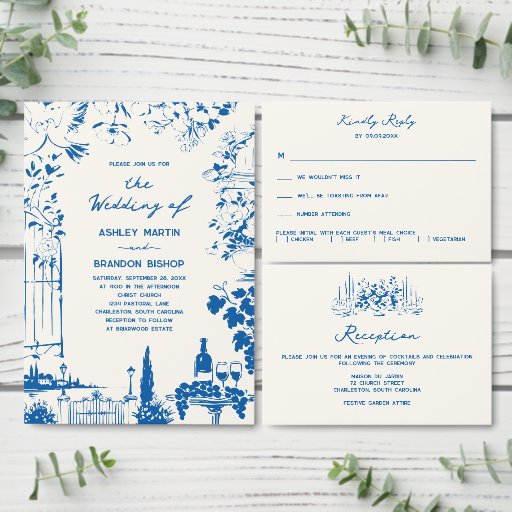 Tarjeta De Recepción French Blue Whimsical Wedding Reception