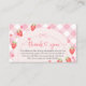 Bienvenidos a su princesa pequeña con estilo con nuestra tarjeta de agradecimiento con nuestra fresa de berry dulce bebé. Este diseño presenta fresas acuáticas y flores en un fondo de gingham rosa. La temática perfecta para una ducha de bebé de inspiración estival.