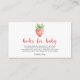 Tarjeta de invitación a la ducha de bebé con ilustracion acuático de fresas. El texto dice "un bebé dulce de berry está en camino". Elementos coincidentes disponibles.