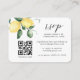 Frutas cítricas modernas y elegantes tarjeta RSVP de boda QR. Tarjeta RSVP con limones de acuarela pintados a mano y vegetación en tonos amarillos y verdes, escritura moderna de caligrafía y código QR. Puede personalizar la redacción, el estilo de letra, el color y el tamaño delante y detrás de esta tarjeta RSVP botánica. Elementos coincidentes disponibles.