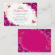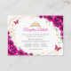 Fuchsia pink gold and white floral Quinceanera reception details enclosure cards. Features, script font, gold butterflies, watercolor roses and tiara. Perfect for an elegant princess style glam celebration. Personalize with your own details.