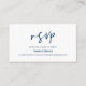 Esta es la moderna Navy Blue elegancia casual tinta minimalismo fuente Script, Boda RSVP Tarjeta de Gabinete. Puede cambiar los colores de fuente y agregar los detalles de boda en la fuente / letra coincidentes.