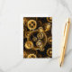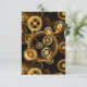 Sin soldadura, metalizado, latón, engranajes dorados sobre un fondo oscuro y oxidado. Estilo Steampunk.