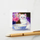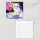 Cartas de clausura con un hermoso gatito blanco con una cinta morada! Este florido gatito se encuentra junto a un bol azul y un jarrón de flores rosas, violetas y blancas. Un regalo maravilloso para los amantes del gato y del arte victoriano.