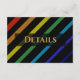 Share important wedding details with this elegant gay wedding enclosure card. Bold diagonal rainbow stripes on sophisticated black with gold typography create a modern, masculine design perfect for directing guests to your wedding website, registry, accommodation, or transportation information. Fully customizable with your text and details. Coordinates beautifully with our complete Gay Men Wedding Collection for a cohesive look throughout your wedding stationery suite. Ideal for contemporary LGBTQ celebrations seeking personalized, unique wedding details cards that match your invitation perfectly.