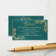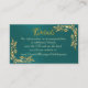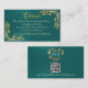 Marco de hojas de oro en la tarjeta de gabinete Verde azulada con un elegante fondo verde azulado con un marco de hojas de oro. Para más información sobre el código frontal y QR con el marco monograma cardíaco en la parte posterior. Diseñado para coordinar con la colección de Bodas "Doves, Heart & Gold Leaves". Para cambiar detalles, haga clic en "Personalizar". Para mover el texto o cambiar el tamaño del texto, el tipo de letra o el color, haga clic en "Haga clic en el personalizar"