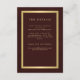 Simple classic modern jewel tone of deep burgundy and gold frame minimalist typography wedding details invitation insert card template on a vintage style antique distressed looking background. +++++++++++ The invite is suitable for an elegant classy formal autumn fall or winter wedding ceremony and reception.