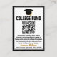 Esta moderna tarjeta para el recinto del fondo de la universidad para personalizados negros y dorados incluye un enlace de código QR para que los huéspedes contribuyan a los gastos universitarios de tu graduado de secundaria. Personalizar con su mensaje, el nombre de la escuela y el año.
