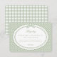 Tarjeta De Recepción Green Gingham Coquette Bow Baby Registry