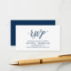 Esta es la tarjeta RSVP minimalista estética moderna, en caligrafía azul de la Marina, para su respuesta de invitación a la boda, o tarjeta de recinto para celebración de fiestas. Puede cambiar los colores del tipo de letra y agregar los detalles del boda utilizando la herramienta de edición de texto Zazzle. Teesha Derrick