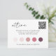 Animar a su invitado a usar una paleta de colores en su boda agregando esta pequeña tarjeta con CÓDIGO QR y paleta de color boda a la invitación a la boda Este diseño incluye tres campos de texto personalizado para los detalles del boda, un sitio web y un código QR y una paleta editable de 5 colores. "Atrapar" en letra de guión elegante con escritura manuscrita moderna con letras de acento,
