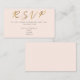 Esta tarjeta de respuesta RSVP moderna presenta un fondo suave de color rosa nupcial con un efecto dorado lujoso "RSVP" en escritura elegante, perfecto para combinar con suites de bodas contemporáneas. El diseño minimalista proporciona espacio claro para incluir información esencial del día de la boda, como lugar, correo electrónico, teléfono y sitio web en el reverso, manteniendo los detalles de los invitados organizados y fáciles de consultar. La apariencia dorada se imprime para un aspecto refinado, y todo el texto es totalmente editable para que coincida con planes y estilos específicos.