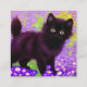 Cartas de gabinete con un gatito negro Gustav Klimt! Esta belleza de ojos anchos posa en un campo verde de flores moradas. Un regalo para los amantes del gato y del arte austriaco.