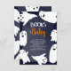 Añade tus libros para el bebé a tu invitación con este ilustracion super lindo con fantasmas en color naranja y azul. Puede cambiar todos los colores del ilustracion y del texto.