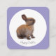 Süßes Kaninchenjungtier schaut erwartungsvoll auf weißem Untergrund.