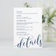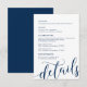 Tarjeta De Recepción Hermoso guión azul marino, detalles de nuestro Bod